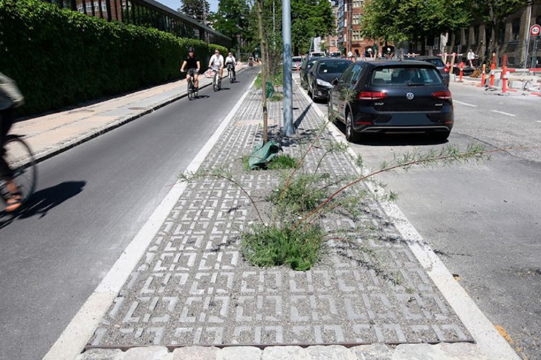 Frederiksberg Kommune har i samarbejde med virksomhederne Dines Jørgensen & Co. og Midtgaard A/S udviklet en ny belægningssten, som kaldes klimasten. Klimastenen har struktur som en svamp og kan optage regnvand. Klimastenen måler 30x30 cm, og en belægning med klimasten kan indeholde op til ni liter vand pr. kvadratmeter. Det opsamlede vand fordamper eller ledes ned i et underliggende bassin, som forsinker processen, inden regnvandet ender i kloakken. Foruden at medvirke til at klimatilpasse byen skaber klimastenen også grønnere omgivelser, da den er designet, så der kan gro græs og løgplanter i og mellem stenene. Vandindholdet i stenene skaber gode vækstbetingelser, da stenene langsomt afgiver vand til græs og planter, som dermed bliver robuste nok til at kunne modstå den slidtage, der er på arealerne. Klimastenen bruges som en trædeflise fx på p-pladser og andre arealer, hvor man ellers typisk ville opleve nedtrådt græs eller en ren asfalt- eller flisebelægning. Klimastenen har en stor robusthed og fungerer godt i forhold til både tilgængelighed og evnen til at holde græsset grønt. Klimastenen er i dag implementeret flere steder på Frederiksberg og vil også blive brugt i fremtidige anlægsprojekter i Frederiksberg. Andre kommuner viser ligeledes interesse for klimastenen.