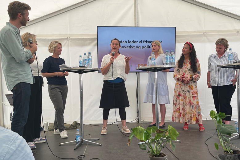 Denne sparring kom fra tilhørerne i teltet og fra et perspektiveringspanel bestående af Ulf Hjelmar, professor VIVE; Janne Koefoed programchef for Frontløbernetværk om Helhedsorienterede Indsatser, Ballerup Kommune og Pia Gjellerup, direktør, CO-PI.