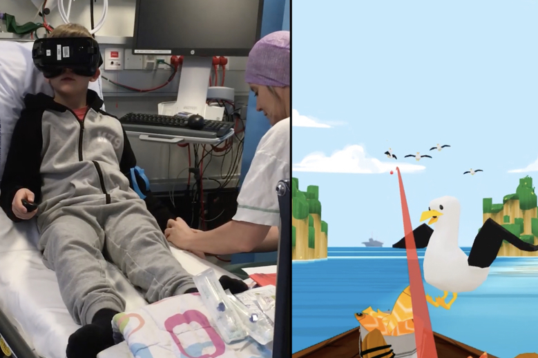 På den baggrund begyndte han at undersøge mulighederne for at bruge Virtual Reality (VR) til afledning af børnene, da denne teknologi allerede er afprøvet som en metode til adspredelse af indlagte børn fx under isolation eller i forbindelse med brandsårsbehandling.