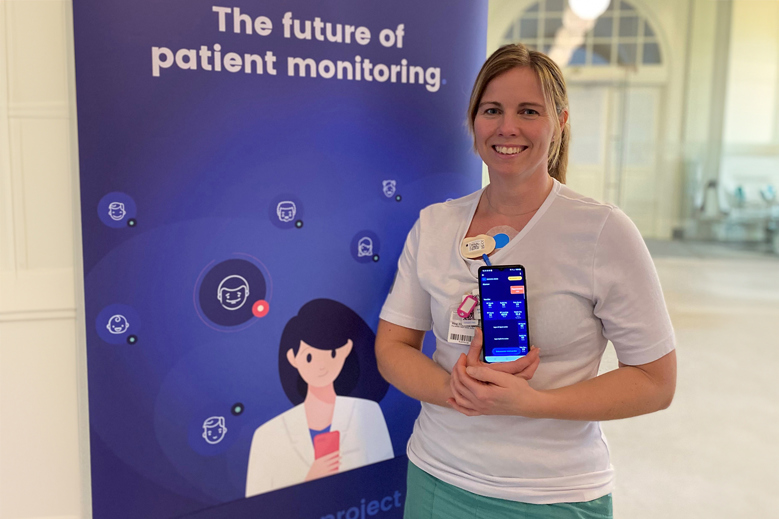 Løsningen er trådløs sensorer, der indsamler sundhedsdata som hjertefrekvens, blodtryk og iltmætning i realtid – og sender en alarm til personalets arbejdstelefon, hvis patientens tilstand forværres.